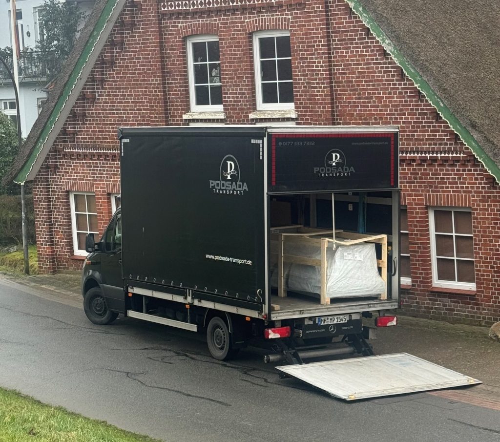 Mit der Hebebühne an unseren LKWs sind wir sehr flexibel einsetzbar und können Paletten bis direkt vor die Haustür transportieren.